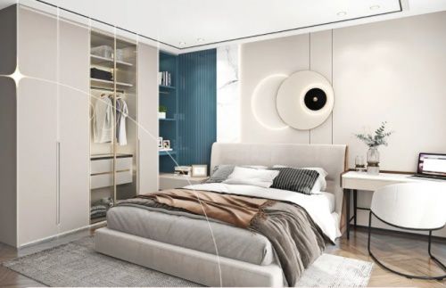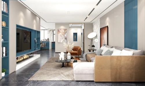 超哑肤感·冰极蓝使用了特有的冰极蓝点缀,在空间里展现了色彩与光的动感,素雅的基调显的十分高级。选材运用极为考究,哑光表面,细腻丝滑的触感,让人感到柔软、舒适。整个设计在语言方面实用极简的体现形式,现代洗练质调与内在的底蕴互为映衬,在冰极蓝的光影渲染下,像一块轻盈的浮冰,点燃了清澈幽秘的个性因,游离在舒适放松、柔和静谧的空间氛围里,使人在快节奏的都市生活中享受高品质的自在生活。