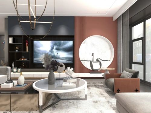 超哑肤感·高级灰选材运用极为考究,细节之处可见情怀优雅沉稳的青瓷灰与暖灰色自然碰撞形成了强烈的对比,为空间带来自然的过渡以一种自由又不沉闷的方式呈现它独有的气质朱砂红点缀为优雅静谧的空间增添了活力整体空间趋向于用克制的手法删繁就简,回归居住者最真实的需求。