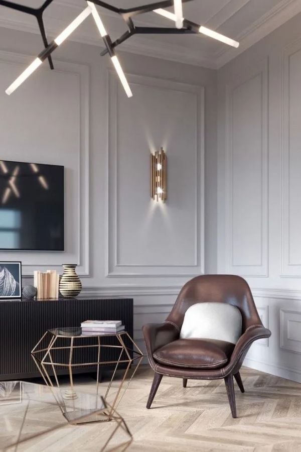 通常情况下,金属材质不必大面积的使用,现代轻奢风格,金属作为点缀,比如家具的包边、包角、饰品等来使用。