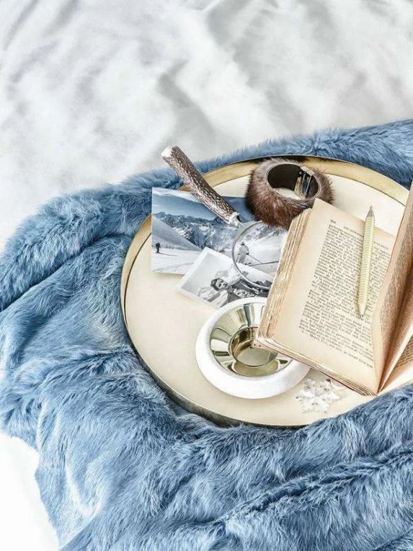 第三个就是皮草,皮草类似貂毛、仿毛、裘皮,代表了高贵优雅,皮草在触感上也能够创造丰富质地的感觉,我们称之为肌理感,当然为了奉行环保主义,我们可以选择一些人造皮毛也可以营造轻奢的氛围。