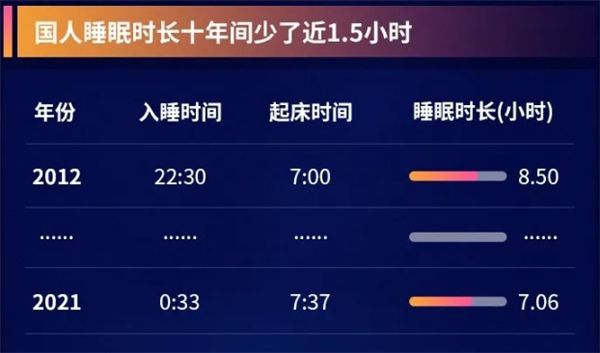 对于国人而言,拥有充足的睡眠本身就是一件“奢侈”的事。据《中国睡眠研究报告2022》,国人的睡眠时长已经由10年前的8.5小时下降为了如今的7.06小时,而很多人的睡眠甚至不足7小时。