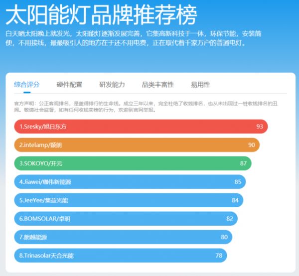 第4,品牌性与专业性,据小编了解,深圳市旭日东方实业有限公司在新能源太阳能领域方面已有18年的发展历史,旭日东方在盖得排行榜太阳能品牌推荐榜一直位居第一位,SOLARAXY作为旭日东方五个全球商业品牌之一,其新能源智能化设备及智能控制系统在海外智能家居领域有多年的经验,并持续获得好评。