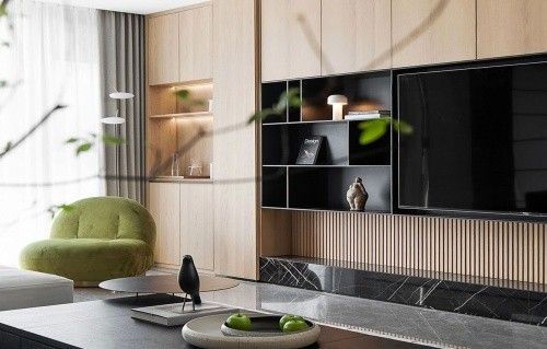饱满的原木饰面纹理,在品质与自然间做到完美平衡,让空间拥有一种高级的静默,与日常生活展开合作,对抗冰冷的钢筋水泥,让家弥散出温柔与优雅的气质。再搭配上灯光的氛围加持,让你在欢愉的视觉演绎下,感受到前卫、深邃而内敛的情调。