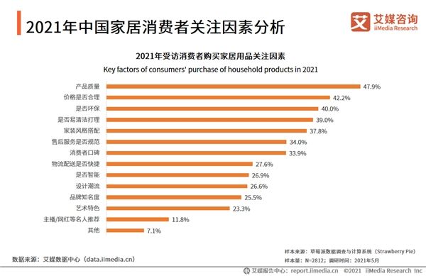据《2021年中国家居产业链研究及标杆企业案例分析报告》显示,消费者购买家居用品关注因素中“售后服务是否规范”、“物流配送是否快捷”等关于售后服务保障的部分占比分别高达34%、27.6%。最新发布的《中国家居行业售后发展白皮书》也总结了行业售后服务标杆企业的服务特点,分别是:把消费者的权益放在首位、重视产品、诚信经营、重视服务。