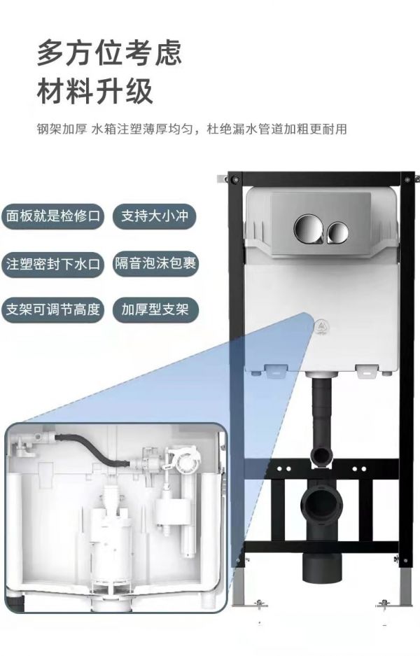 为杜绝水箱渗漏问题,邦吉威材料实验室经过反复的比对,选择采用HDPE高密度聚乙烯材质,这种材质化学性能稳定,能有效防止水箱本体老化及脆化现象,用户可安心使用长达50年。搭配一次性注塑成型的工艺,箱体无任何接缝,从而更好地杜绝潜在的破裂和渗漏隐患,以极好的韧性和强度,有效抵抗外力破坏,甚至被称为“砸不坏”的水箱。此外,经特殊防锈防腐处理的钢架,搭配使用邦吉威壁挂式座便器后可承重400公斤,拥有极高的安全稳固性。