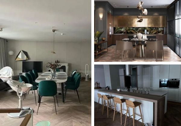 客餐厅分层的做法解决原客餐厅同层带来的厨余味道对客厅的影响。在二层设立中餐厅和西餐厅,满足业主生活需求的同时也提高了业主的优雅生活品味。