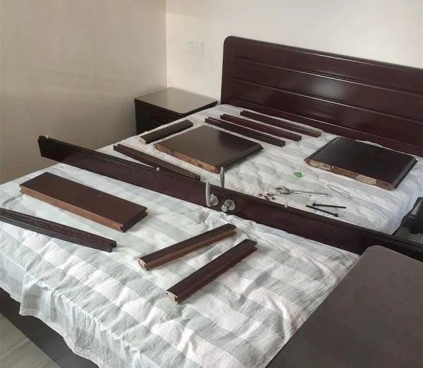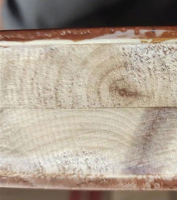 然而只过了大半年,唐先生便发现其中一扇木门有开裂现象,便联系该品牌售后部门。对方当即答应,可以为其更换一套新木门。2022年春节过后,师傅带着一套新木门来到唐先生家中,并将开裂的木门拆卸下来。然而,就在拆卸的过程中,唐先生发现,这个红橡实木门上三块门芯板,却是非红橡木板材拼接而成的,只有最外面一层贴皮是红橡木,根本不是当时承诺的从里到外都是红橡木。