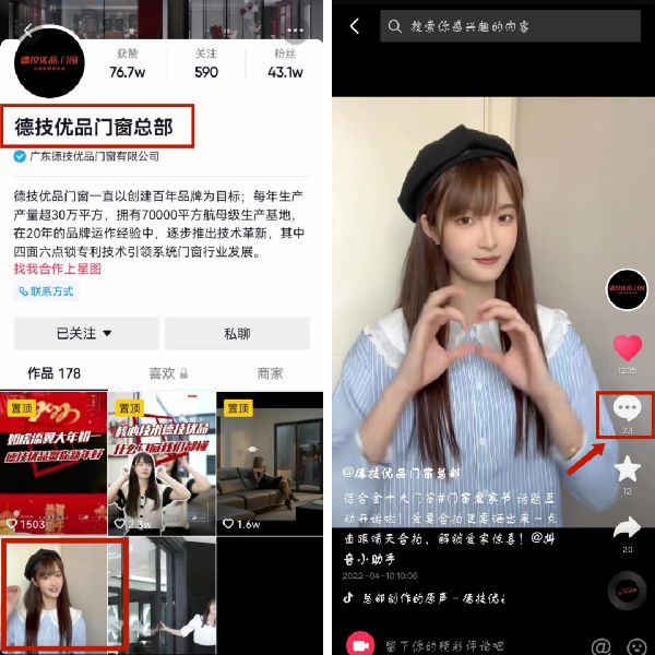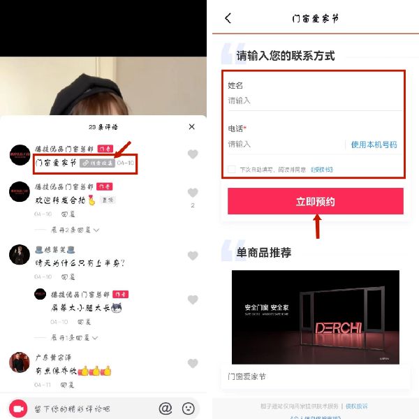 找到评论区第一条评论“门窗爱家节”,点击后面的“线索收集”