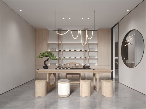 茶室以素雅浅色为基调,