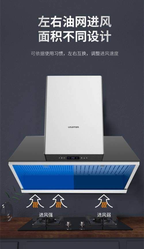 左右油网进风,合理分配进风速率,释放自由烹饪空间,也可依据使用者的习惯进行调整,拢烟更彻底,升级双风道净烟体验。