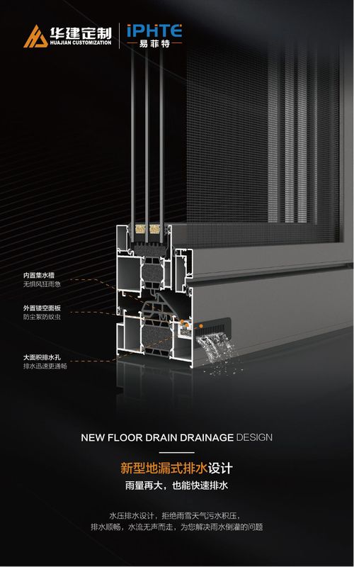 值得一提的是,华建定制易菲特系列在加强窗户防水上还设计了新型地漏式排水,内置集水槽,外置镂空面板,利用水压排水设计实现排水顺畅,而不至于使得雨水倒灌。