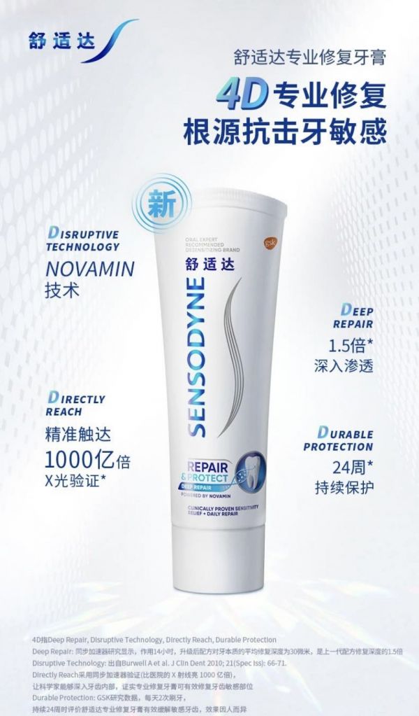 没有人能拒绝一口清新健康大白牙,舒适达抗敏感专业修复NovaMin技术3支装温和亮白牙齿 370g(100g×3+赠便携装35g×2),它采用NOVAMIN技术,修复牙本质小洞,有效缓解牙敏感,用后口气清新,口感甜润,是众多口腔医生推荐的抗敏感牙膏,现在购买,还送2支35g旅行装!