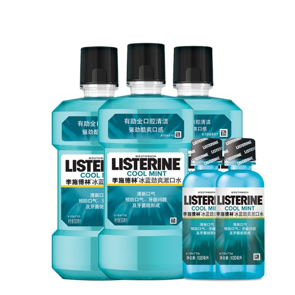 口气清新,形象加分,李施德林 (Listerine) 漱口水冰蓝劲爽口味清新口气深层清洁 (500mL*3瓶+100mL*2瓶)套装,经典冰蓝劲爽口感,轻松实现深度清洁,让您持续拥有清新口气,现在满2件,总价打9折,点击领取满119享8.8折优惠券!