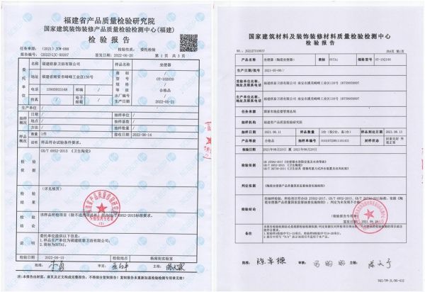 以陶瓷坐便器检测为例,国家建筑材料及装饰装修材料质量检验检测中心依据GB 25502-2017《坐便器水效限定值及水效等级》、GB/T6952-2015《卫生陶瓷》、GB/T26730-2011《卫生洁具 便器用重力式冲水装置及洁具机架》等标准对欧泰卫浴送检产品的各项性能,如洗净功能、排放功能、水效等级、安全功能等进行权威、专业检测,报告显示欧泰卫浴全部送检产品20项检测项目中所有指标均为合格。