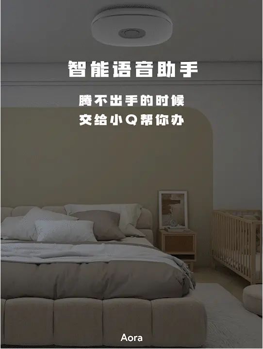 考虑到家长照料孩子时可能腾不出手拿遥控器,Aora还贴心地搭载了语音助手小Q,只要张张嘴,小Q为你完成开关灯和调光等任务。