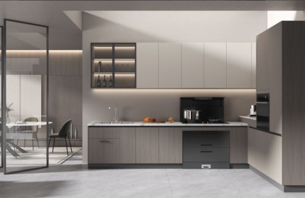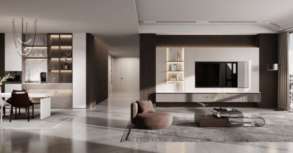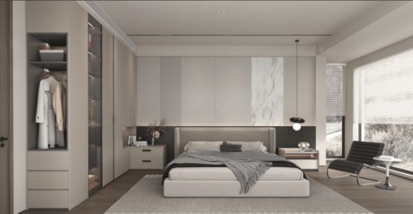 【简·光年】以麦克道尔的著作《心灵与世界》中化繁为简、源于自然的自由自然主义思潮作为灵感来源,崇尚原木质感与温润的舒适体验。在整体空间色彩上,【简·光年】运用奶油白色搭配木纹,营造视觉上的碰撞,尤其深色的木纹饰面既保持了深沉的质感,又与周围的浅色系形成鲜明对比,让整体空间更具层次,让居者在超越时间、空间的质朴与安静里,感受奢繁与自然并存的呼吸感。而在【简·光年】的功能上,如一体化的客餐厅设计,打造出无边界的舒适自由感;L型厨房,营造流畅的操作动线,让烹饪轻松无忧;一门到顶的衣柜,采用分区设计,收纳、展示一应俱全等,可以说欧铂丽将个性化与实用性恰到好处地结合,不仅营造非凡的视觉效果,更大大提升居住者的感知体验,为广大消费者的美好生活无限续杯。