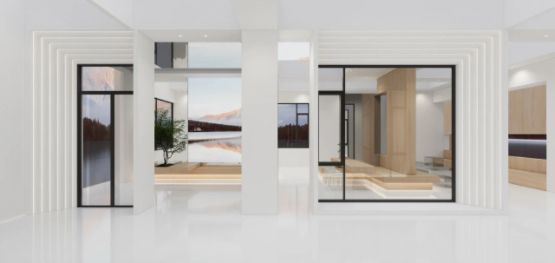 大面积的白色调运用,极具雅致感与科技调性。区别于传统的展厅设计,欧福莱门窗在空间中通过不同品类的门窗动态排列,升华感官体验与互动参与性,让门窗不仅仅是门窗,而是世界沟通的桥梁,与未来品质生活对话。