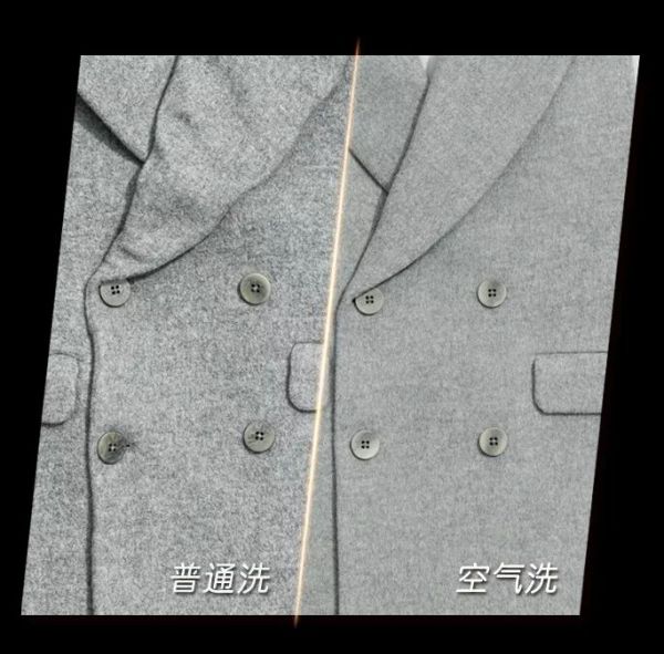 空气洗护理后,版型挺阔,平整如新,还原色泽,去除异味,保暖如初。