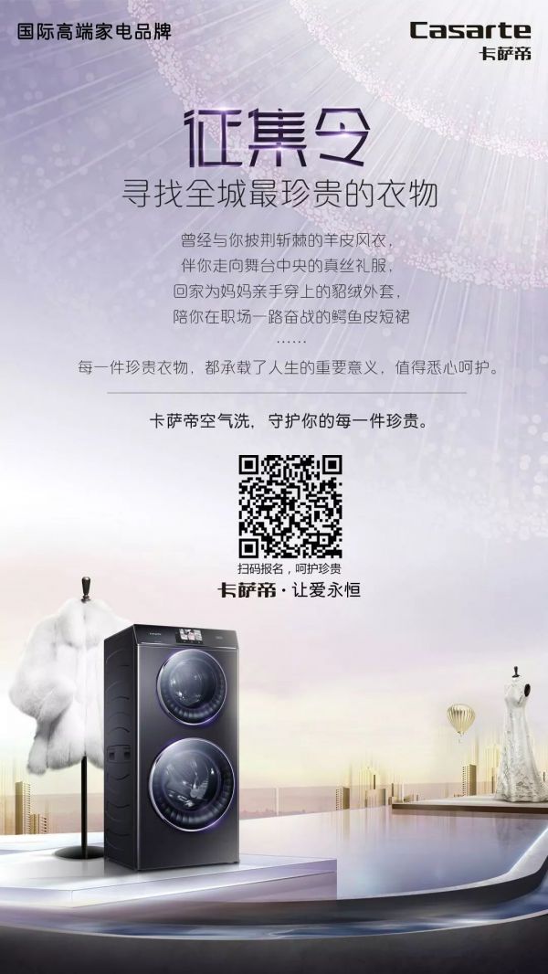 而卡萨帝洗衣机为每一件华裳对抗时间的磨砂
