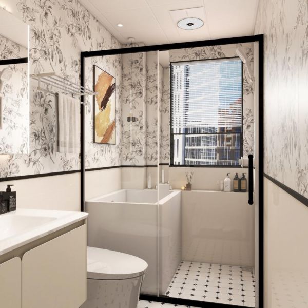 此外,金属配件、玻璃隔断与陶瓷台盆等不同材质也在光影中扮演着不同角色。金属在点光源下闪耀精致细节,玻璃凭借其透射与朦胧特性划分空间却不割裂光线,陶瓷则以其温润的质感柔化光的边缘。这种材料与光线的多重互动,不仅丰富了空间的表情,也让卫浴空间在艺术性与功能性之间取得巧妙平衡。