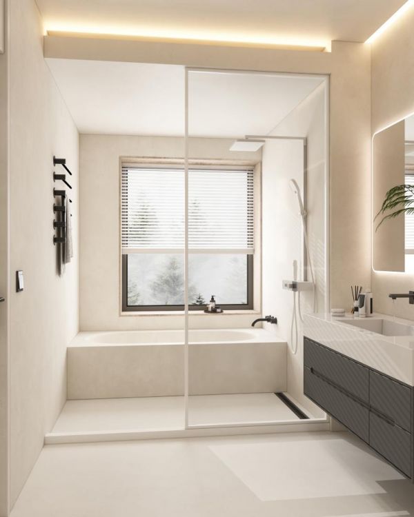 真正优秀的光影设计,往往能够讲述空间的故事。水爱深谙此道,在设计策略上强调自然光与人工光的协同与过渡。以“觅境系列”为例,该系列通过引入天窗、高窗等结构,最大化地将自然光线纳入空间。白天,阳光随时间流转在墙面、地面与洁具表面留下动态痕迹,使整个卫浴空间充满生机与变化,让使用者在洗漱沐浴之余也能感知外界的时序更迭。