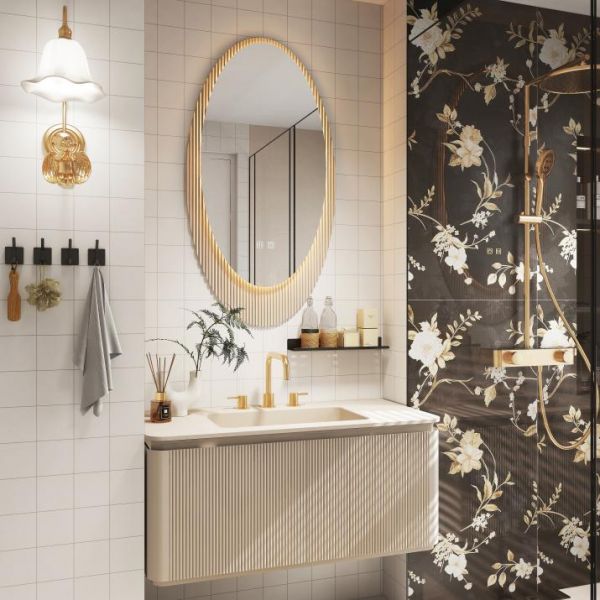 而当自然光渐弱,人工光便无缝接续叙事的节奏。智能灯镜可变化光色,提供3000K-4500K的可调色温,无论是清晨清醒的冷白光,还是夜晚放松的暖黄光,都能精准适应用户的心理与生理节律。这种从自然到科技的光影过渡,不仅提升了视觉舒适度,更创造出一种连续的情绪场景,让卫浴体验成为连接自我与自然的静谧仪式。
