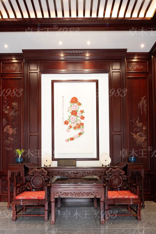 在重庆,卓木王与书画世家携手,开启了一场红木整装的精彩实践。从深入洞察业主对红木文化的独特喜好与生活需求,到精心挑选每一块质地优良、纹理精美的红木原料,再到运用精湛的传统榫卯工艺与现代精细加工技术打造每一处细节,卓木王以专业的红木整装能力,将这座祖宅打造成集中式美学与红木文化于一体的典范之作,赢得了客户的高度赞誉。