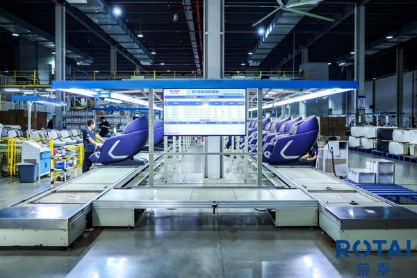南浔工厂作为荣泰自动化水平最高的生产基地,展现出高度集成的智能制造图景。从皮革自动裁切、机芯模块化预装,到整机三道全检与静音房测试,每个环节均通过MES系统实现数据贯通与电子标件管理。