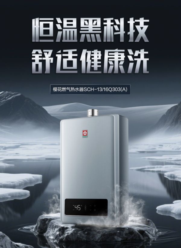 樱花燃气热水器Q303将智能恒温的健康净浴,融入生活的每一刻,让温暖水流成为家人每天的小确幸,让品质生活在家中自然长驻。