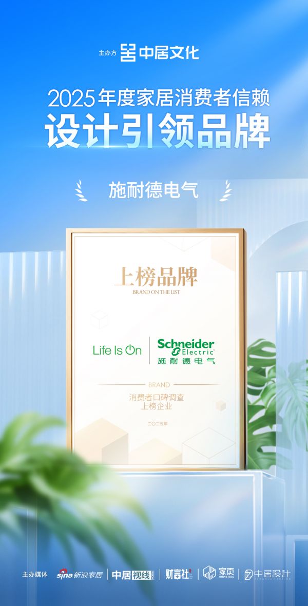喜报!施耐德电气荣获「2025年度家居消费者信赖设计引领品牌」称号