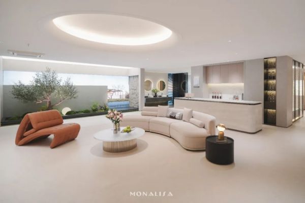 2025年,蒙娜丽莎瓷砖更以“无界设计”重构高端瓷砖产业布局,全新推出的无极·石界、七星珍岩、时空石韵等系列,依托无极无界的创新设计、定点微晶闪工艺等创新技术,实现瓷砖从单一装饰材料跃升为承载艺术表达的空间介质,满足高端定制与多元场景需求。