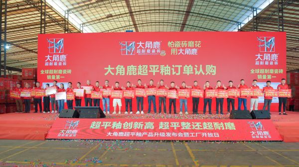 兼具 “超平整” 与 “超耐磨” 硬核实力的产品,不仅是消费者的优选,更是经销商开拓市场的 “硬核利器”!活动现场,27位大角鹿经销商代表当场签订首批认购订单,订单金额高达6000多万元。首发即热销,印证了市场对大角鹿超平釉新品的高度认可,也预示着“超平釉”瓷砖即将迎来全面爆发。