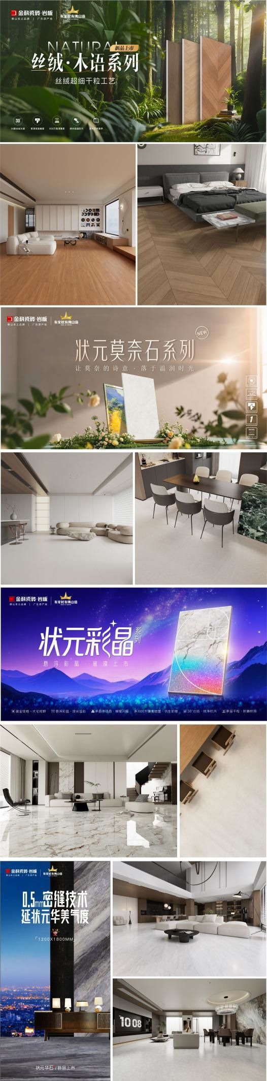 近年来,金科瓷砖持续先后推出专利产品状元彩晶、丝绒木纹砖、莫奈石、珠柔抛等一系列新品,以"状元标准"推动产品向高端化、国际化迈进,持续引领行业高质量发展。这些创新产品不仅体现了企业的研发实力,更展现了金科对品质极致追求的品牌理念。
