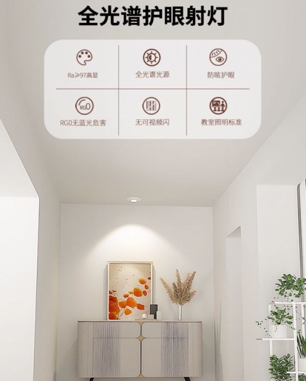 除了光谱的优化,宜美全光谱灯具还融合了多项护眼技术: