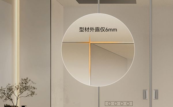 视线的简洁是实现空间无界感的关键。VH纯平淋浴房采用极窄不锈钢全包框,墙材嵌入预埋安装后外露仅6mm,让淋浴房在浴室中“隐”于无形,既弱化产品自身存在感,又强化空间整体统一性,营造通透开阔的视觉体验。