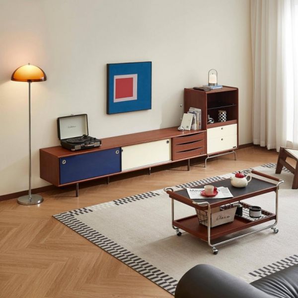 包豪斯风电视柜搭配附柜,以中古经典拼色演绎色彩美学,高低错落布局彰显层次美感。内嵌圆环拉手与凹槽拉手,简单实用防磕碰。不锈钢细腿装饰,造型简洁轻盈,为空间注入现代灵动美感。底部17cm留空,方便扫地机器人自由进出,不留卫生盲区。