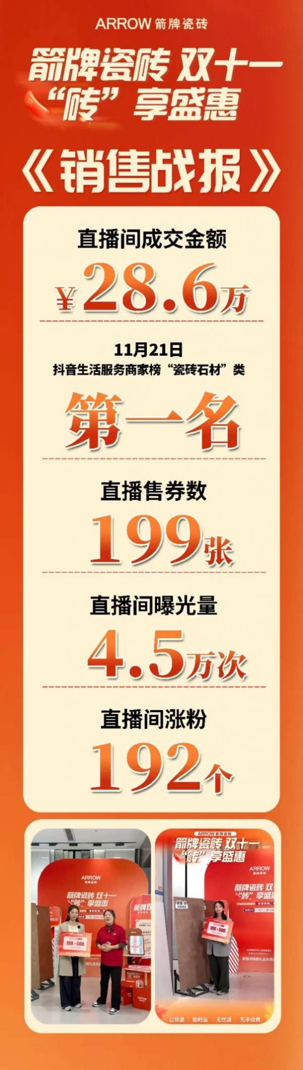 活动期间,通过线上直播强势引流,引爆全场。箭牌瓷砖市场部经理亲临现场,以专业视角为消费者深度解读产品工艺。这场直播不仅是优惠的释放,更是一场品牌与用户零距离沟通的盛宴,极大地激发了消费者的参与热情。