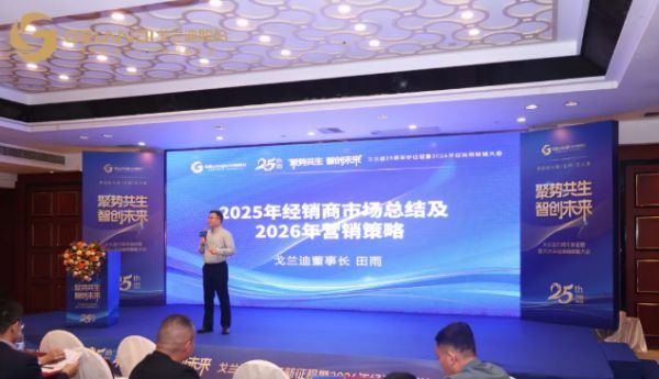 在题为《2025年经销商市场总结及2026年营销策略》的压轴报告中,田雨董事长用数据说话:在充满挑战的2025年,戈兰迪经销商体系实现了销售增长率96% 的逆势飞扬。他系统回顾了“百城千店”地面推广、四大终端赋能工具(检测魔盒、导购系统、铭牌、灯箱)等组合拳的有效性。面向2026,他正式发布了名为 “一二三四五” 的清晰作战方针:坚持一个食品级核心战略;推动产品功能与服务体系双重升级;用好三大终端工具;开拓老店深挖、新店开发、新渠道、新媒体四大路径;落实业绩、盈利、产品、价格、团队五大增长策略,并定下了渠道销售增长49% 的进取目标。