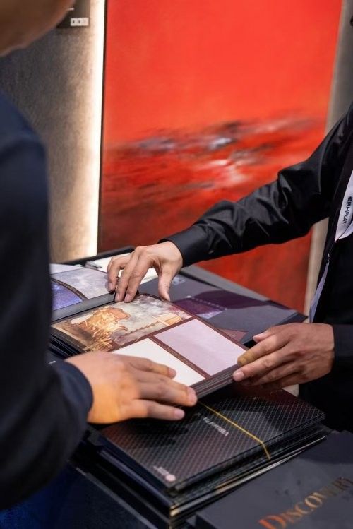此次的艺术礼盒备受关注,当天的浏览、打卡量达上万人次,国内外专程参观的客户络绎不绝,行业内多家媒体渠道也做了相关采访和报道。参观者对此次的展示方式、工艺效果赞不绝口,表示对艺术漆有了新的认知。设计师们对艺术漆多维度、多区域、多场景的使用表现出极大的兴趣。