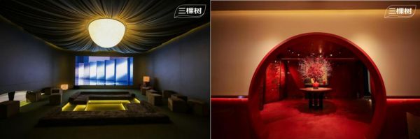 三棵树突破传统涂料展陈模式,构建出东方人居美学的完整表达体系。主品牌馆以“月亮”为情感意象,隐喻“家是永恒守望的明灯”,呼应设计周“亲爱”主题。通过“一序五庭”的递进式叙事,将曲径、院落、厅堂等园林意象与现代生活场景深度融合。