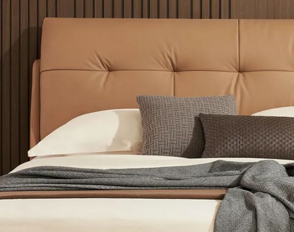 - 亮点:分段式人体工学床头,精准贴合腰背曲线,加厚设计不管追剧还是休憩,都能放松腰背;进口头层黄牛皮细腻有弹性,高回弹海绵+7孔纤维棉双层填充,支撑与柔软兼顾,久靠不塌陷。