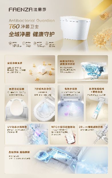 T60净菌卫士专研全域净菌系统,将“洁净”做到极致:从入座接触到洗护、气味净化到离座后的消杀自洁,洁净健康守护贯穿如厕全流程。即使面对女性生理期的敏感需求,也能提供专属洁净守护,彻底打消卫生顾虑,全方位护航日常健康。