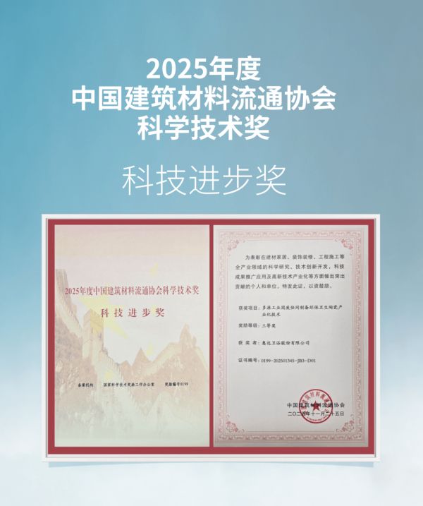 惠达卫浴,用一项拿下行业最高奖的硬核科技,写下了自己的答案。