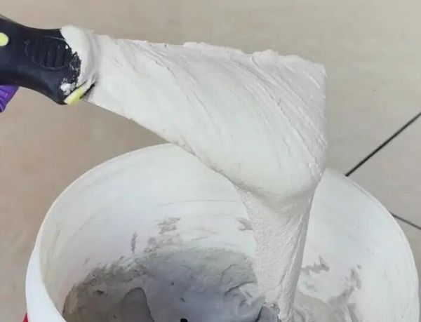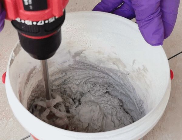 将填缝料添加到盛有清水的容器中,充分搅拌至无生粉团、均匀的膏状;