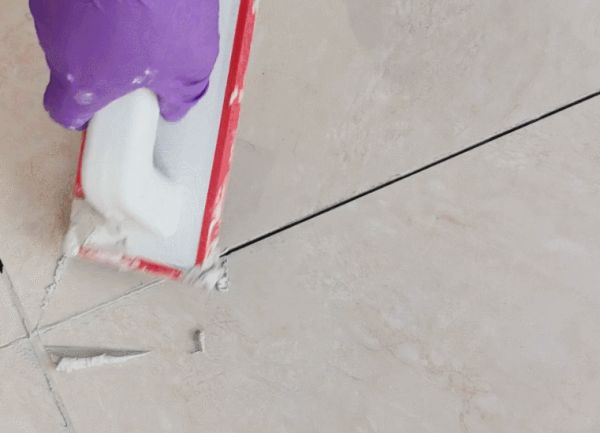 为防止缝隙内的填缝料被刮去,多余的填缝剂应用橡胶抹子沿瓷砖对角线上刮去。