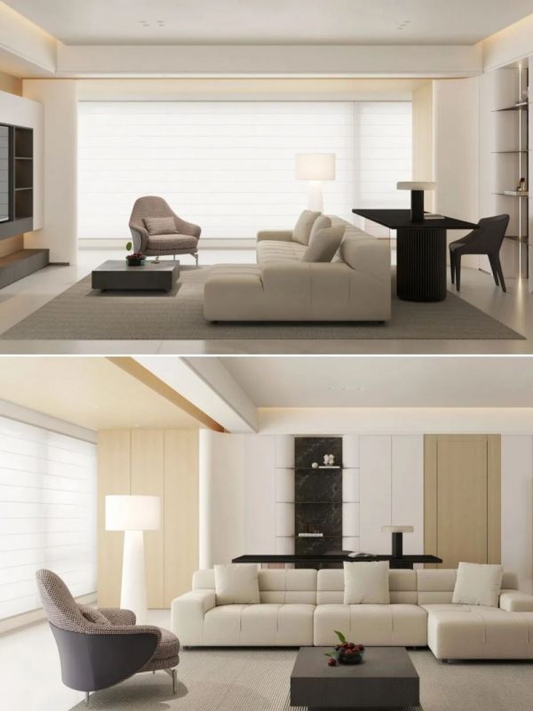 这种方式不阻挡光线,确保了空间的通透感。搭配一块契合区域形状的地毯,能进一步强化不同功能区的心理界限。