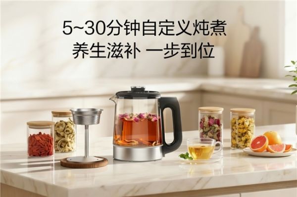 想喝一杯提神醒脑的玫瑰陈皮茶?10 分钟就能快速出味,开启活力满满的一天。想为身体补充营养?20 分钟的炖煮时间,刚好能释放红糖姜枣茶、乌梅山楂饮或苹果陈皮饮的全部精华。如果想享受一份宁静的午后时光,30 分钟的深度炖煮,就能为用户呈现一碗温润滋补的银耳莲子羹或冰糖炖雪梨。无论是快速便捷的茶饮,还是滋养身心的滋补品,它都能满足不同的养生炖煮场景需求。