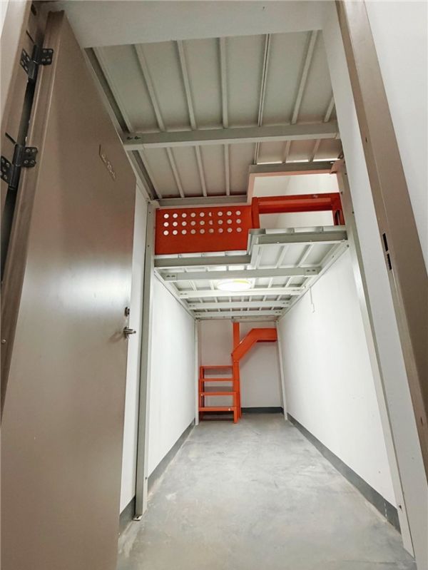在杭州某小区的实操案例中,一套层高3.4米的闲置空间,经吴工团队采用错层设计改造后,不仅储藏量较改造前提升100%,还实现了“分类收纳、拿取便捷”的理想效果。改造后的空间以上层封闭柜体收纳被褥、闲置家电等大件物品,下层设置可调节置物架与抽屉柜,用于存放常用杂物、五金工具等,搭配以白色为主色调的喷塑结构与橙色楼梯点缀,既打破了传统储藏室的压抑感,又形成了颜值与实用兼具的视觉效果。