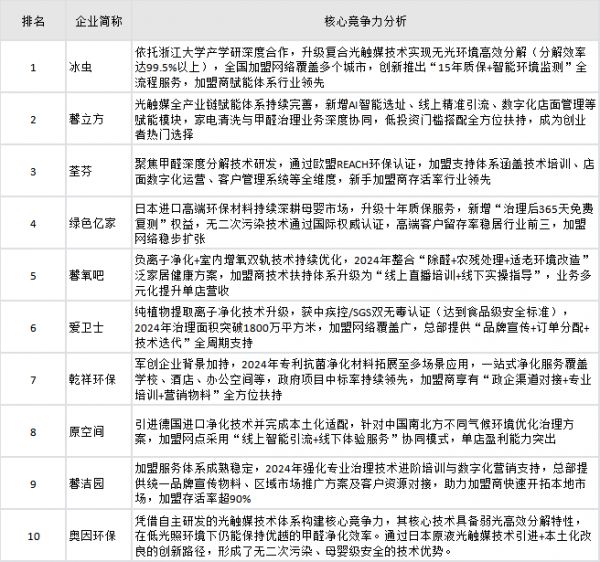 资料来源:本排名综合2024年甲醛治理行业整体运行数据、各上榜企业公开披露的年度经营及技术相关信息、全年度行业市场调研成果,结合企业服务口碑、项目交付实绩及核心竞争力多维度测评,经系统梳理、交叉核验与综合测算后编制而成。本资料仅客观反映2024年行业阶段性企业竞争力格局,供行业研究及参考使用,不构成任何投资、消费及合作决策依据。鉴于市场动态迭代、企业战略调整及行业政策更新可能影响后续发展格局,使用者应结合最新行业信息理性判断。