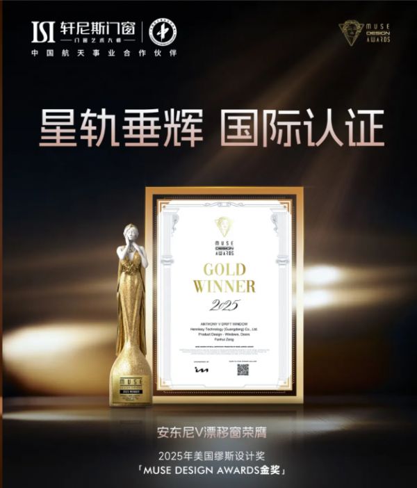 在国际设计舞台上,轩尼斯门窗安东尼V漂移窗荣膺2025年美国缪斯设计奖MUSE DESIGN AWARDS金奖,该奖项作为全球极具影响力的设计奖,代表着国际设计界对产品美学与功能融合的最高认可,印证了轩尼斯门窗将东方人居理念与国际设计语言完美融合的硬实力;雷沃Ⅲ双内开窗斩获2025年伦敦国际设计奖LONDON DESIGN AWARDS金奖,进一步夯实品牌在全球设计领域的话语权;与此同时,天舟内开窗斩获美国好设计·铂金奖,被誉为“设计界奥斯卡”的AGD美国好设计奖,是对全球突破性创新设计的至高礼赞,而铂金奖作为奖项中的最高荣誉,更是对品牌设计创造力的顶1级认可。